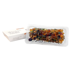 This 200 grams (7oz) mixture contains 8mm (0.3”) diced cubes of orange, lemon, citron peel (cedro), and candied morello cherry. Made using traditional methods, the fruits are hand-peeled and immediately frozen to preserve their essential oils and natural flavors. Unlike other producers, Agrimontana does not use sulphur dioxide in their process, ensuring the taste and quality of the fruit remains unaltered. The company carefully selects their fruit from top regions such as Calabria for oranges and Diamante village for citron (cedro), guaranteeing only the finest fruits are used. =