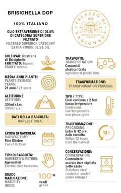 - Extra virgin olive oil DOP ( Denominazione di Origine Protetta - Protected Designation of Origin)