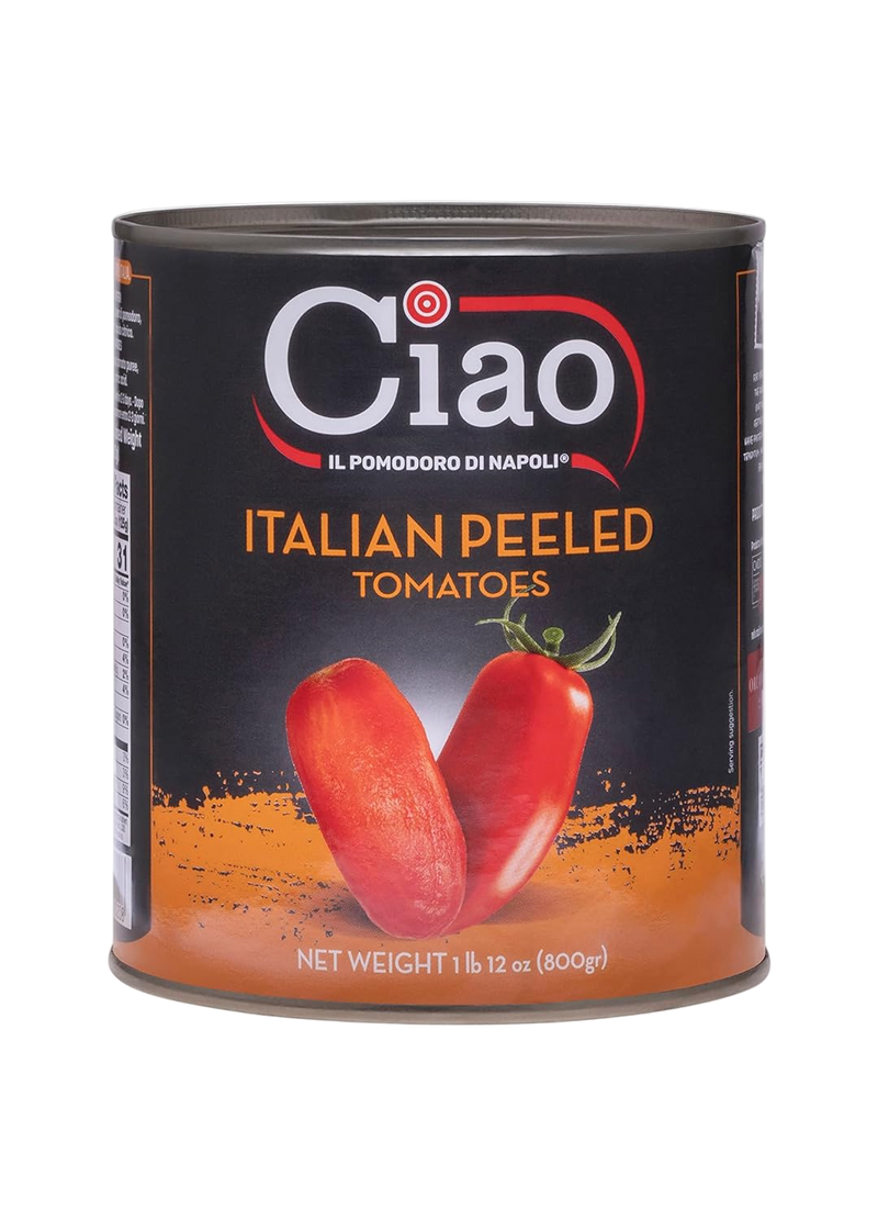 Ciao Italian Whole Peeled Tomatoes are crafted to satisfy the standards of both Chefs and Pizzaioli. Packed in thick juice with reduced water content compared to other brands, they deliver greater tomato solids per can. Fresh basil is included to achieve an ideal flavor harmony.