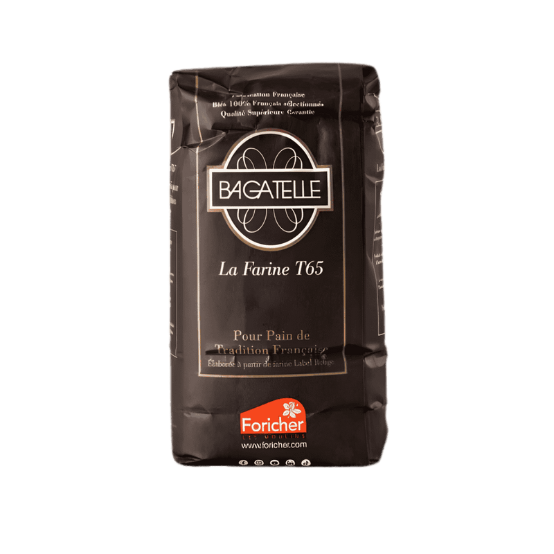 Foricher Bagatelle T65 is a white bread flour, made in France from 100% French Wheat. It is roller-milled from soft wheat by one of France’s prominent mills, Foricher. It has achieved both CRC (Controlled Responsible Production) and the French Red Label for quality and traceability. For use in traditional bread making, this flour is exceptional for baguettes.