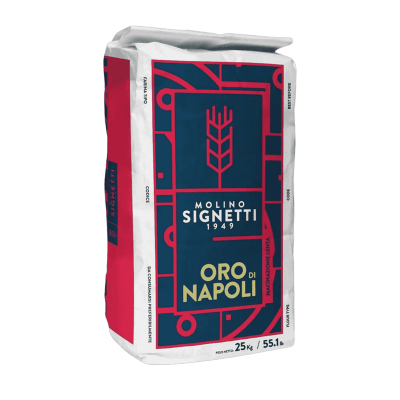 The “Oro di Napoli” flour from Molino Signetti is a soft wheat flour specifically designed for modern Neapolitan pizza (also known as "canotto" or neo-Napolitan). This flour makes a dough with an exceptional crust and a large, puffy "cornicione".