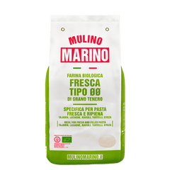 Mulino Marino Farina Tipo “00” FRESCA BIO is a soft-wheat flour created specifically for fresh and filled pasta. It’s produced from carefully selected Italian organic wheat and milled on cylinders to give a very fine, silky texture that absorbs eggs beautifully and rolls out thin without tearing.
