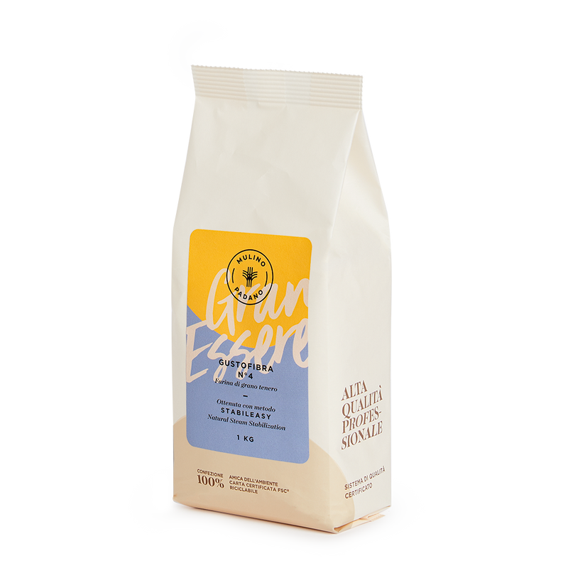 GranEssere Gustofibra N°4 is a speciality flour obtained by the StabilEasy® natural steam process and enriched with soft-wheat germ – one of the richest natural sources of vitamin E. This advanced ingredient boosts fibre content and antioxidant intake while enhancing the fragrance and keeping qualities of breads, rolls and sweet baked goods. It’s designed for bakers who want clean, wellness-oriented recipes that still deliver classic Italian flavour and texture.