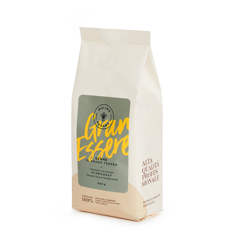 GranEssere Soft Wheat Germ is the highly nutritious heart of the wheat grain, stabilized with Mulino Padano’s natural StabilEasy® steam process to dramatically extend shelf life without additives. This gentle treatment keeps its sweet, toasty aroma and high nutritional value, making it a powerful “booster” for bread, pizza, focaccia, fresh pasta, biscuits and breakfast doughs. The steaming process allows the wheat germ to be used to boost flavor, without damaging the gluten network.