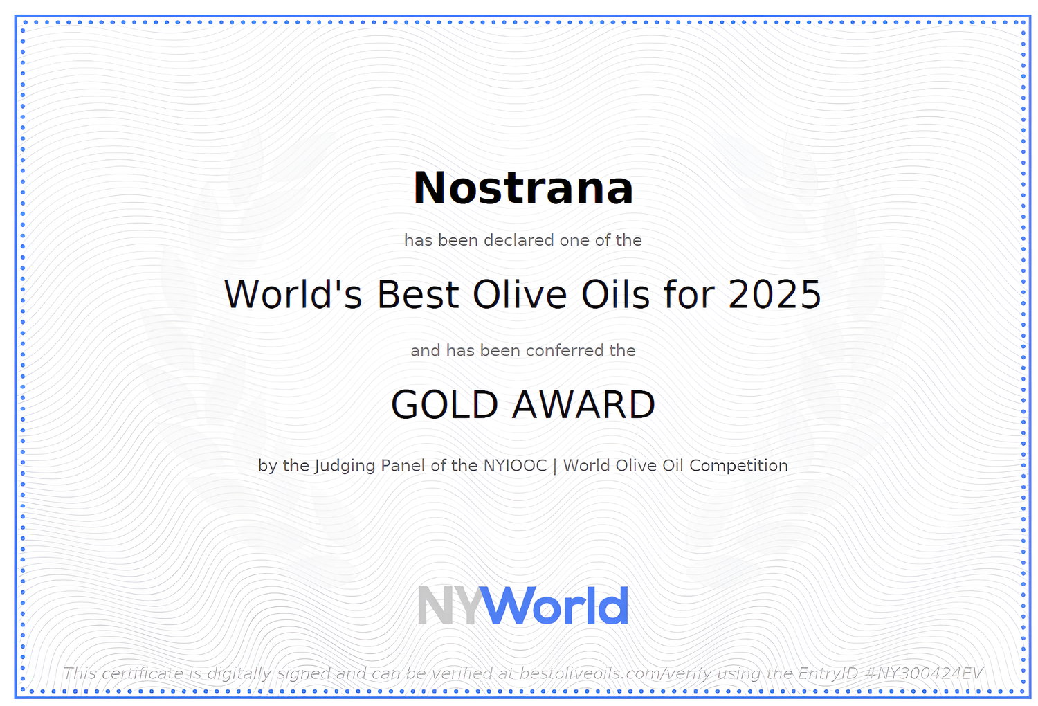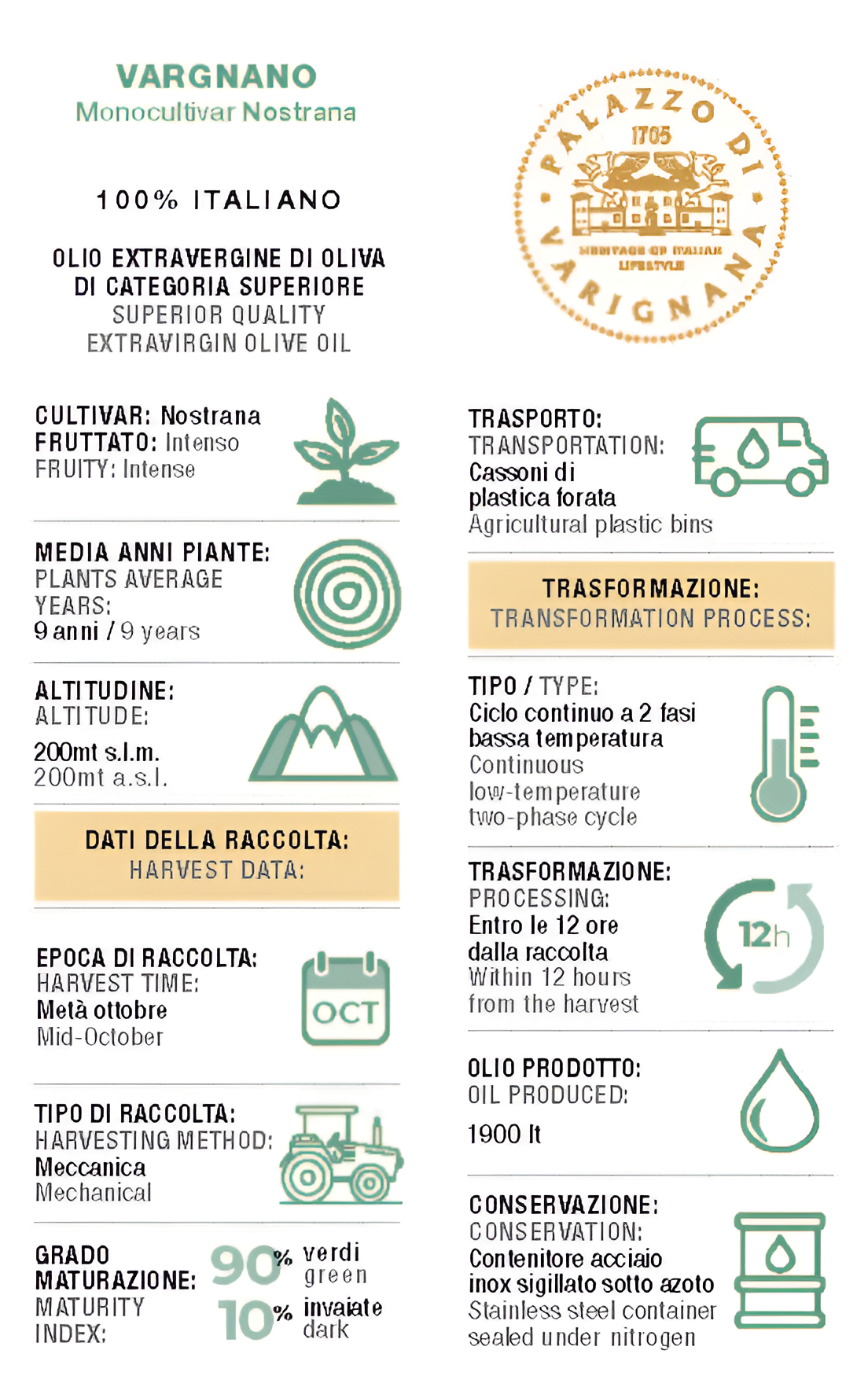 Produced exclusively from the Nostrana cultivar, this oil is crafted from olives harvested green to capture their distinctive qualities. It presents a green hue and offers a powerful fruity fragrance, accompanied by lasting vegetal notes including fresh walnut, artichoke leaves, tomato, and lemon thyme. The flavor is rich and immersive, reflecting its wide-ranging aromatic complexity, and it finishes with a refined, peppery touch of green olive.