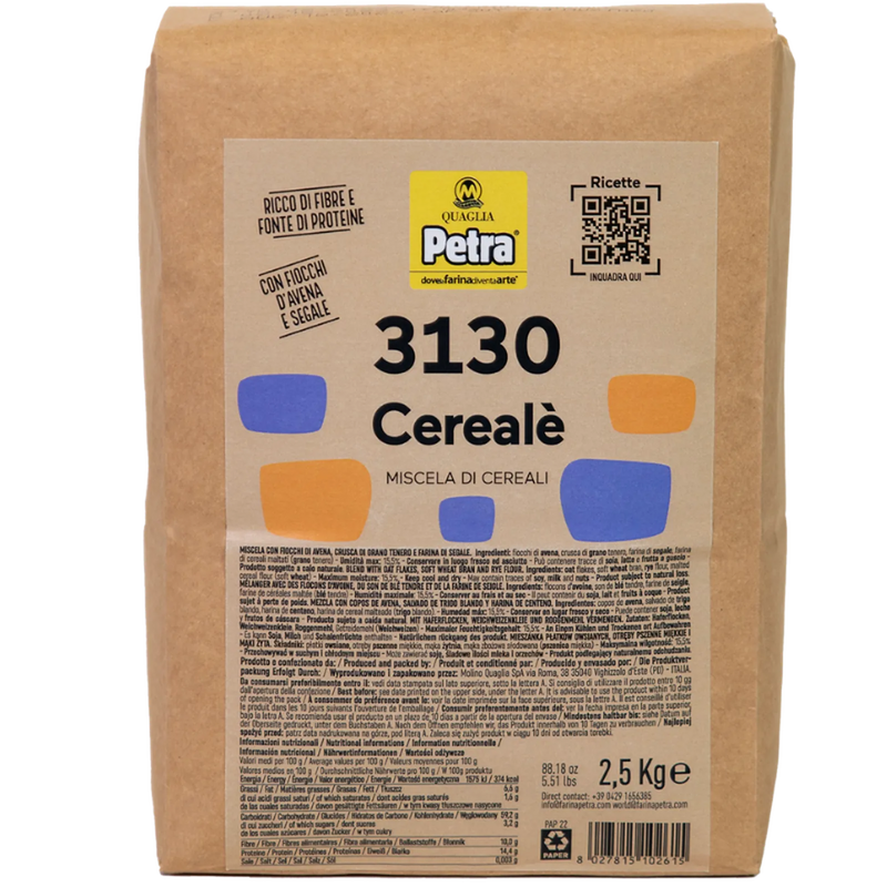 Bring flavor, nutrition, and authenticity to your baking with Petra Cerealè 3130, the all-natural cereal blend from Petra. Specially crafted for professional and artisan bakers, this unique mix of oats, rye bran, malted cereals, and wheat bran adds richness, fiber, and protein to your creations—without any additives or improvers.